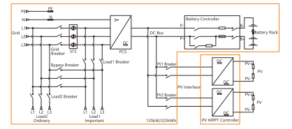 | Inngangsbryter | 2 stk 250A/1000Vdc/2P, 2P/250A/1000Vdc/2P, tilsvarende 2 PVMPPT kontrollerenhet |