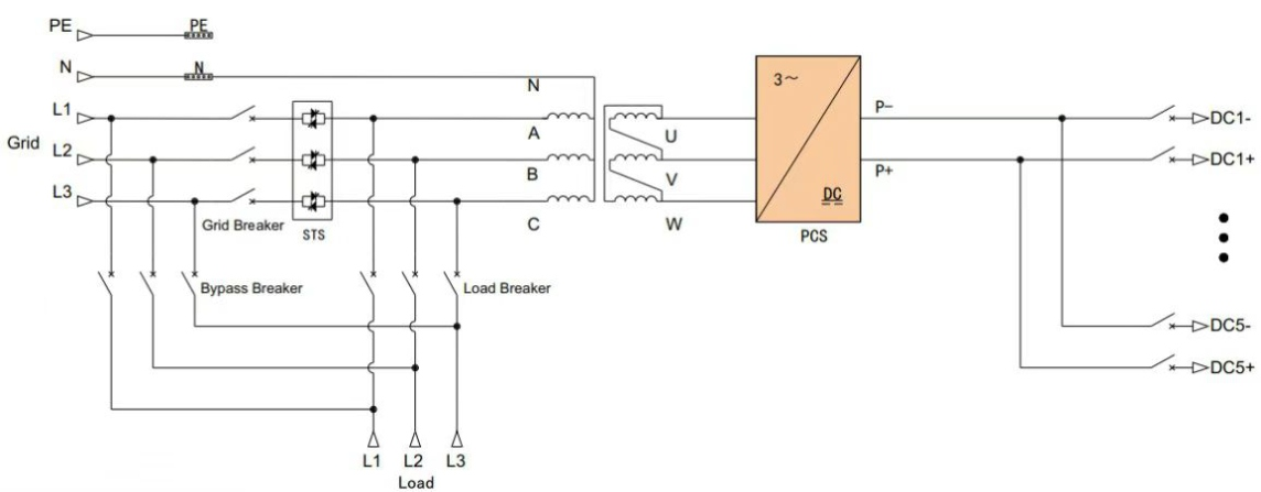 1. Belastninger over 500 kW, det anbefales å bruke en 500 kW energilagringsomformer med stor kapasitet på én enhet, som er i stand til å støtte opptil fire sett med parallellkoblinger, og oppnå en total effekt på 2 MW;
